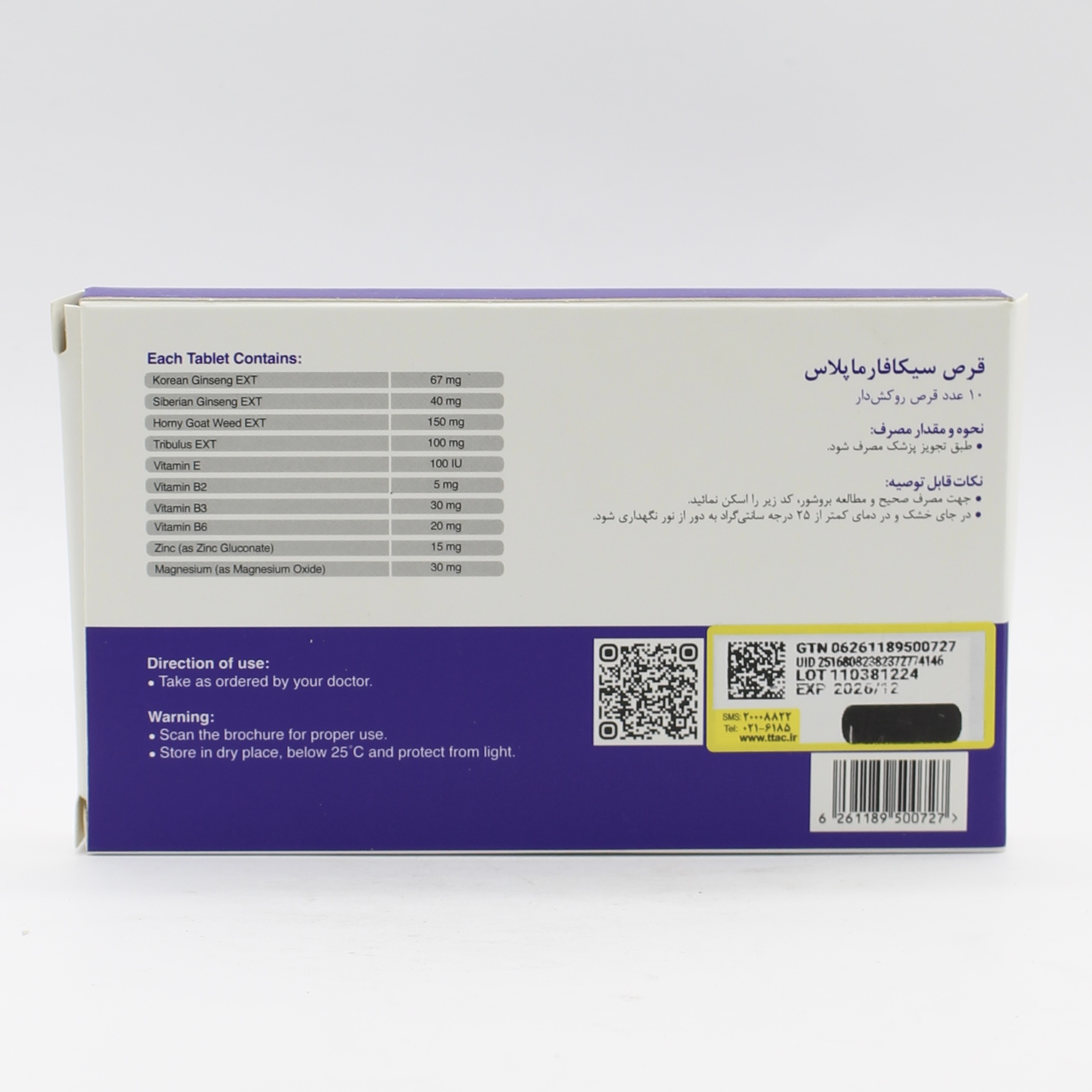 روزانه 1 قرص سیکافارماپلاس را با 1 لیوان آب و همراه با غذا استفاده نمایید.