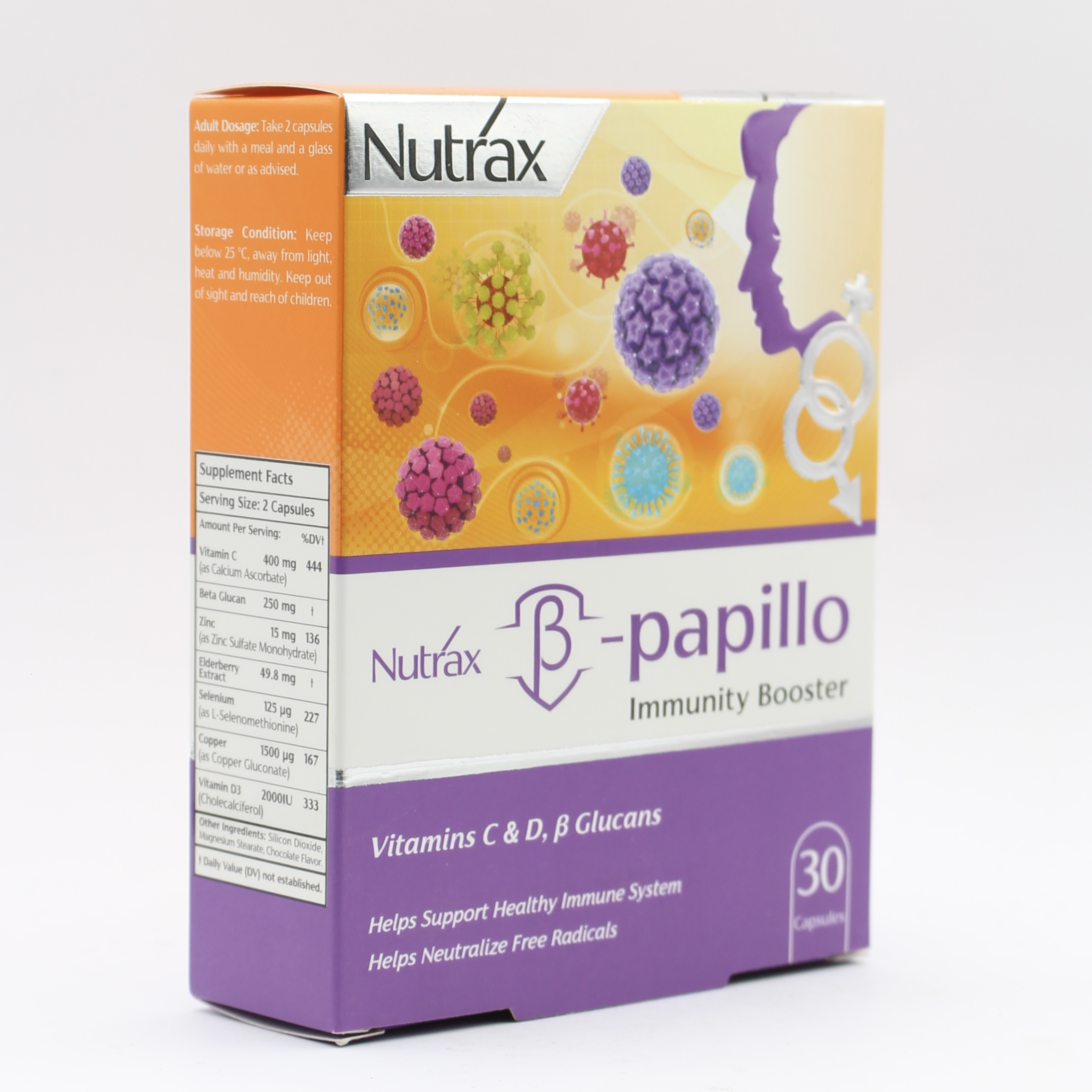 ویتامین D نقش مهمی در تقویت سیستم ایمنی و افزایش فعالیت ماکروفاژها دارد. این ویتامین به تنظیم تولید سیتوکینها کمک کرده و تحقیقات نشان دادهاند که در کنار بتاگلوکان، فعالیت ایمنی بدن را به شکل سینرژیک (همافزا) تقویت میکند. هر کپسول نوتراکس بتا پاپیلو حاوی ۱۰۰۰ واحد بینالمللی از این ویتامین است.