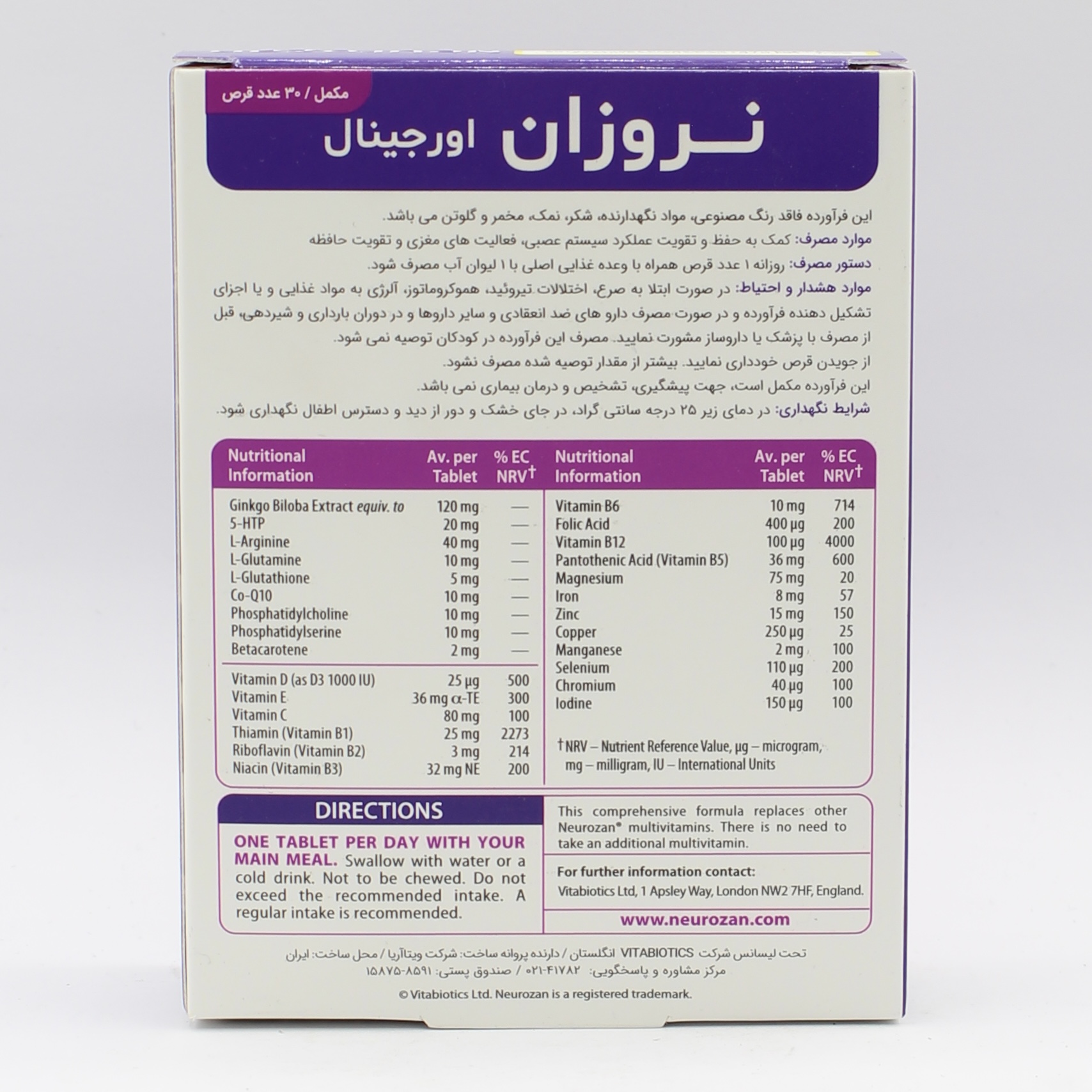 مشخصات کلیVitabiotics Neurozan Feed Your Min Original 30 Tab
